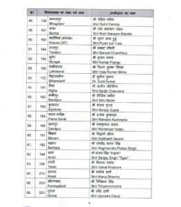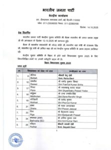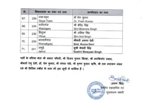 नई दिल्ली। भाजपा ने बिहार विधानसभा चुनावों के लिए अपने 71 उम्मीदवारों की पहली सूची जारी कर दी है। इस सूची में पीके के तमाम आरोपों के बावजूद सम्राट चौधरी को तारापुर विधानसभा से टिकट दिया गया है। कुल 9 महिलाओं को भी टिकट मिला है। इस लिस्ट विधानसभा अध्यक्ष नंदकिशोर यादव का टिकट काट दिया गया है। इस सूची में कुछ 9 पूर्व विधायकों के टिकट काटे गए हैं।