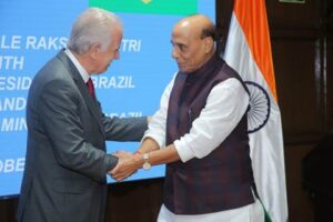 नई दिल्ली, 15 अक्टूबर। रक्षा मंत्री राजनाथ सिंह ने ब्राजील के उपराष्ट्रपति गेराल्डो अल्कमिन के साथ बैठक की। इस बैठक में ब्राजील के रक्षा मंत्री जोस म्यूसियो मोंटेइरो फिल्हो भी उपस्थित थे। नेताओं ने वर्तमान में जारी रक्षा संबंधी गतिविधियों की प्रगति की समीक्षा की और रक्षा उपकरणों के सह-विकास एवं सह-उत्पादन के अवसरों की खोज सहित संयुक्त कार्य के लिए प्राथमिकता वाले क्षेत्रों की पहचान की।